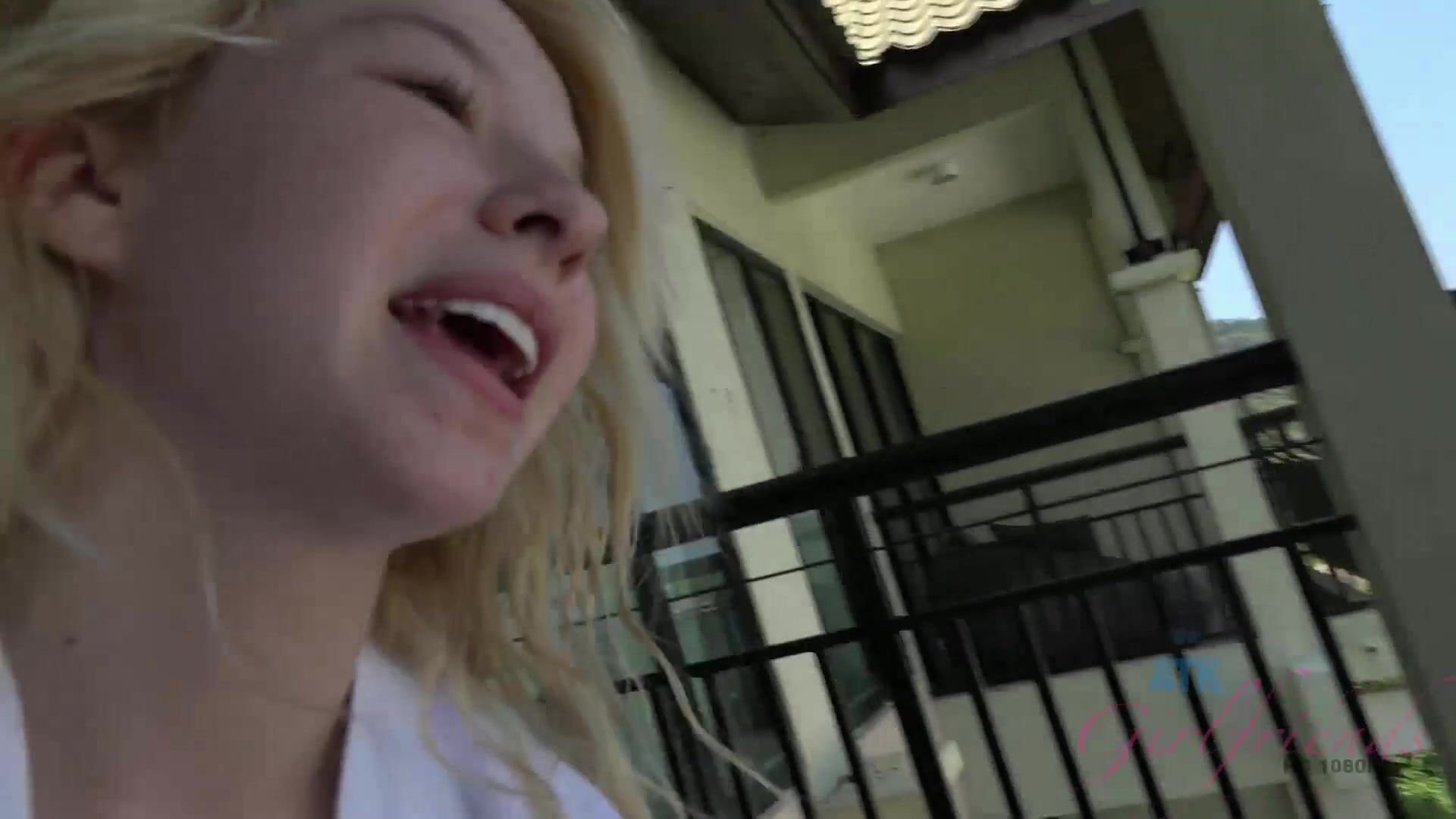 Hottie rides my big dick on the balcony